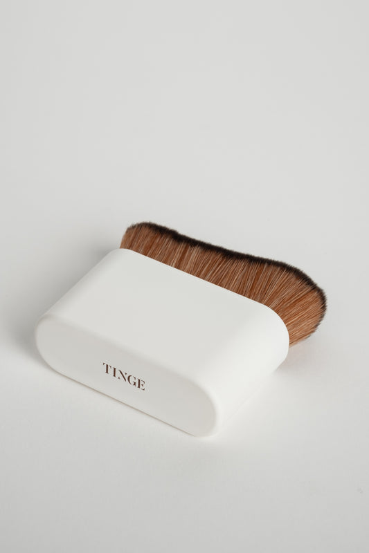 buttery soft, kabuki body brush with curve-hugging synthetic bristles