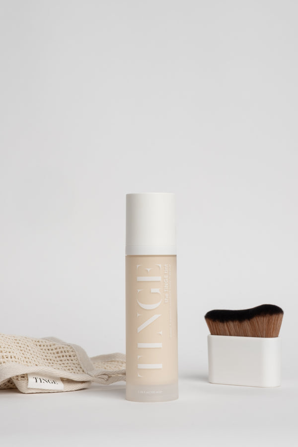 once skin is prepped, apply a dollop of the TINGE tint directly onto clean, oil-free skin and blend until seamless using the detail brush. layer for maximum coverage using a stippling motion on areas that need more coverage like veins, bruises or hyperpigmentation spots.
